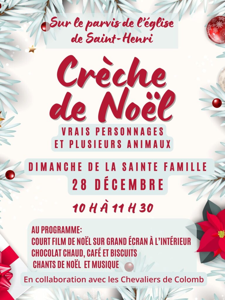 L’Assemblée des paroissiens se tiendra le 21 décembre 2025, à 9 h 45 (avant la messe), à l’église de Saint-Henri.