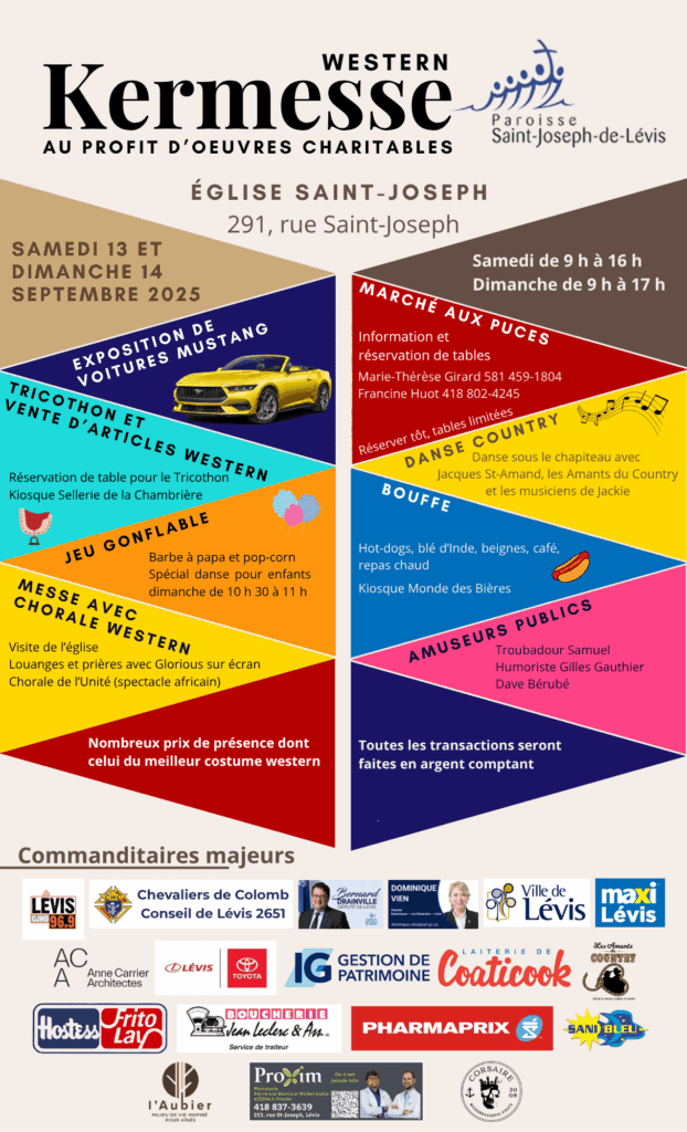 Kermesse western – 13 et 14 septembre 2025 à l’église Saint-Joseph (Lévis) 14 août 2025 par Communications