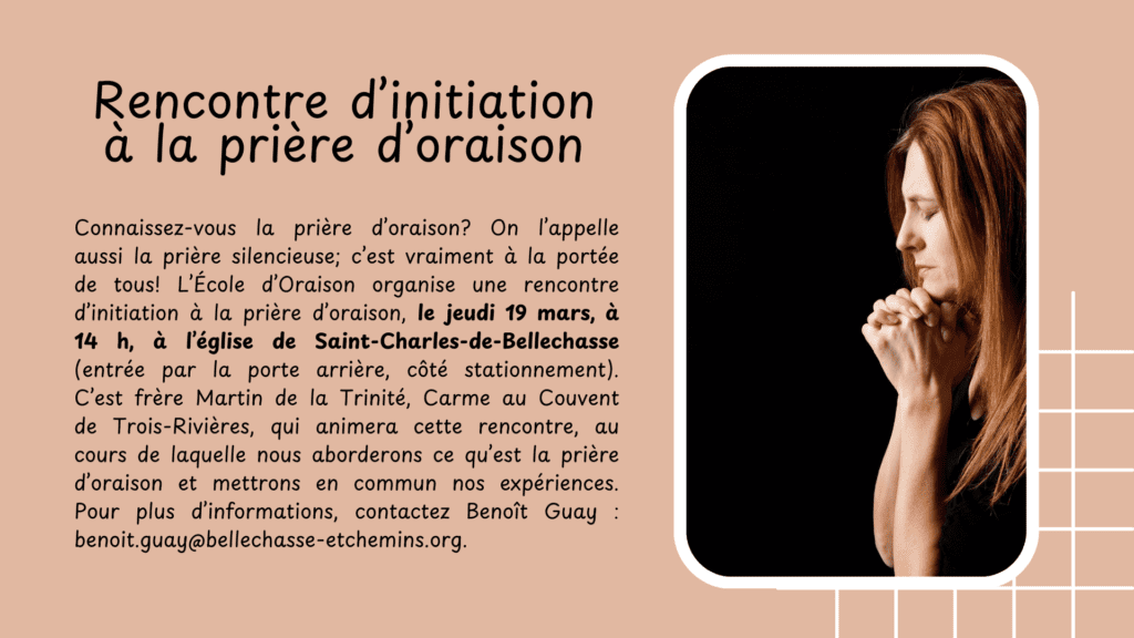 Rencontre d’initiation à la prière d’oraison – 19 mars 2026 à l’église de Saint-Charles-de-Bellechasse 18 février 202617 février 2026 par Communications